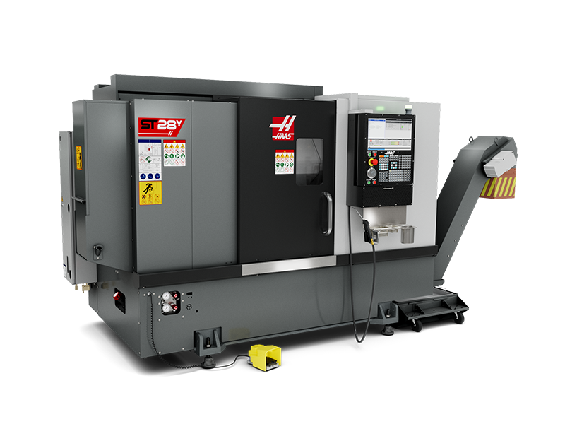 Our ST-28Y turning center combines the heavy-duty A2-8 spindle head of our mid-size ST-35Y big-bore lathe with the compact footprint of our smaller ST-25Y to create a powerful turning center that provides heavy-duty cutting capability, without taking up a lot of valuable shop floorspace. The addition of Y-axis, C-axis, and live tooling allows milling, drilling, and tapping on the face of the part and around the circumference, for increased machine capabilities.